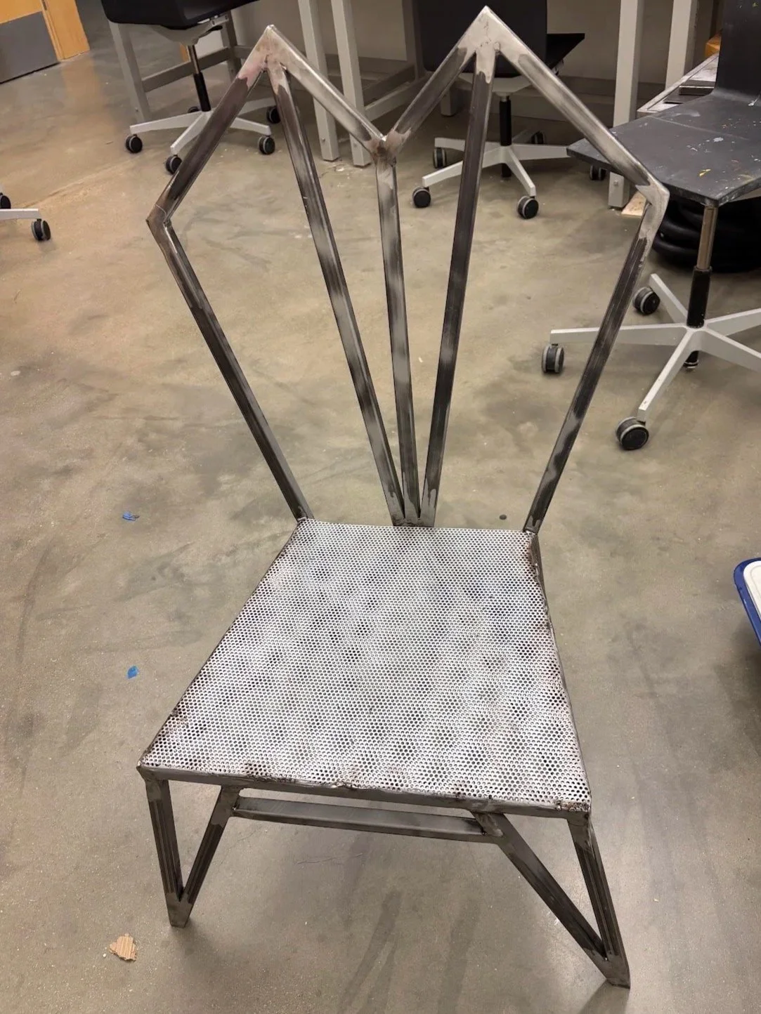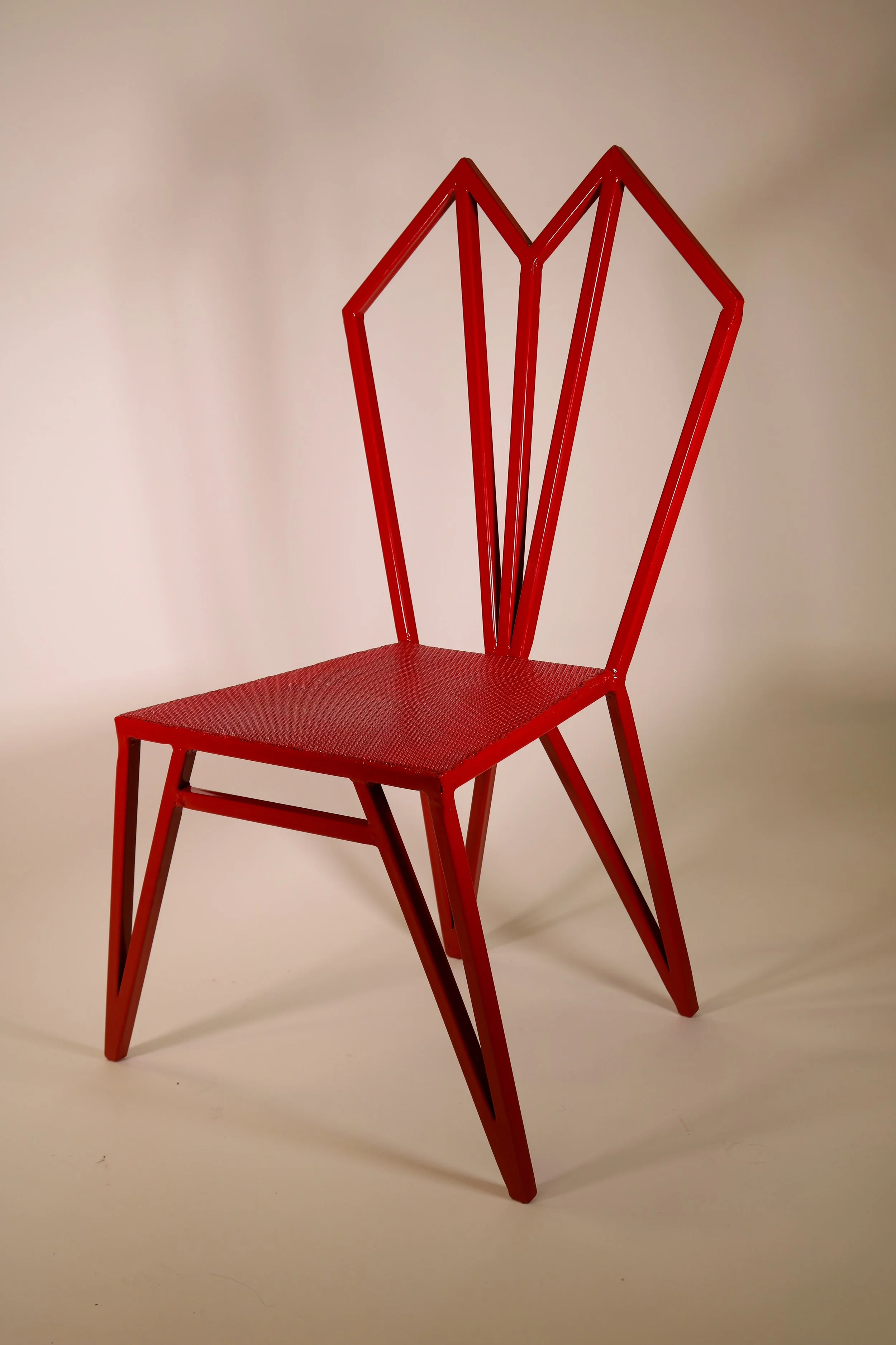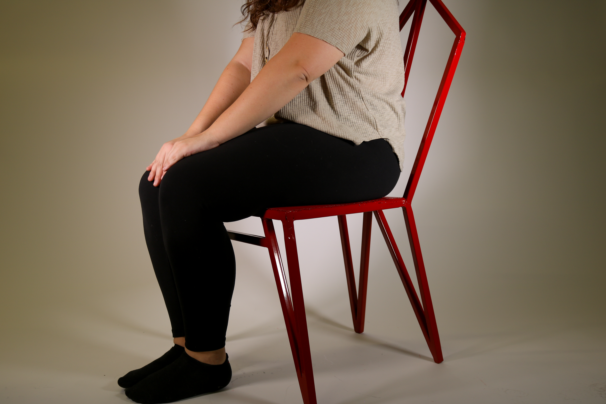 Roxie is a chair made of 0.75 inch metal tubes welded together. The goal of this project was to create a metal chair inspired by a duet, the duet in this case was leather and lace. The back is inspired by corsets which was the main inspiration for the chair. The seat uses the moire effect with two perforated sheets of metal and create a lace effect. The chair is powder coated a deep red, inspired by burlesque which appears throughout the work.